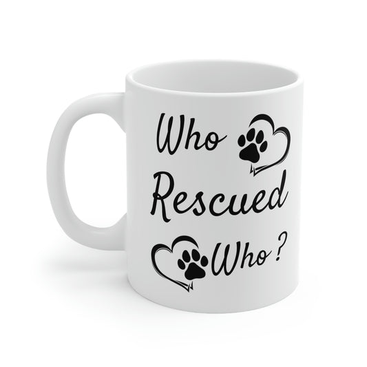 Who Rescued Who? Dog paw print Ceramic Mug 11oz